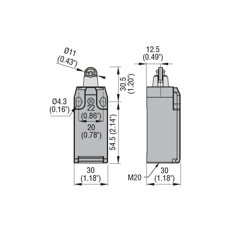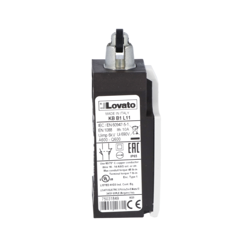 Final de carrera de varilla Lovato serie K con contactos de rodillo 1NO+1NC KBB1S11