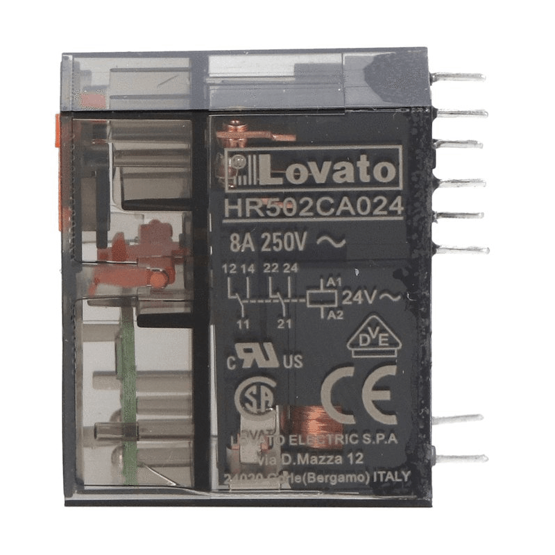 Lovato Mini Relé 8A 2 interruptores 24VAC + LED HR502CA02424