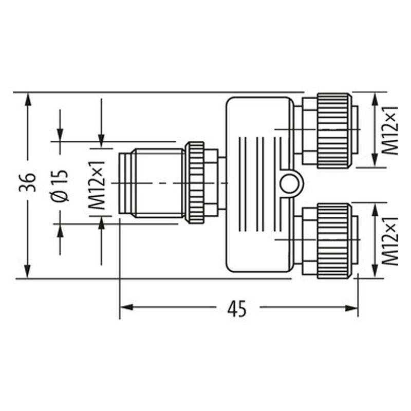 Conector Murr M12 macho y hembra acoplador en T con las siguientes características: