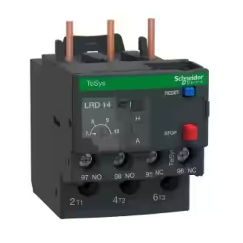 LRD14 es un relé de sobrecarga térmica TeSys LRD de Schneider Electric para su uso con un contactor TeSys D.