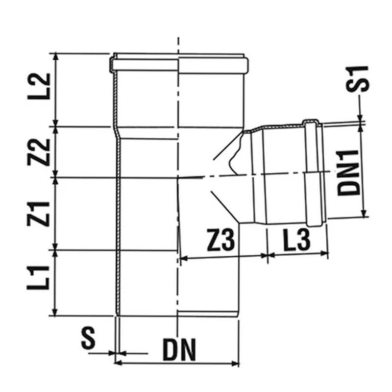 Rama en T Redi para sistema de desagüe insonorizante enchufable con las siguientes características