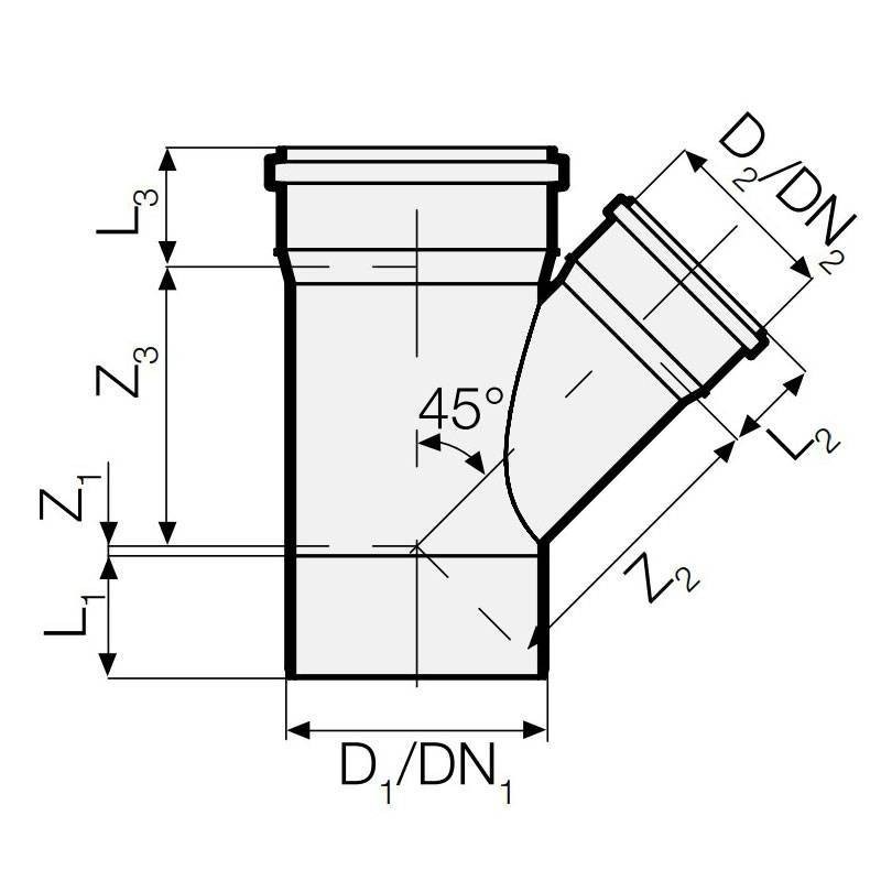 Rama doble 45 grados de PP Valsir PP3 enchufable D110/40 mm VS0506010