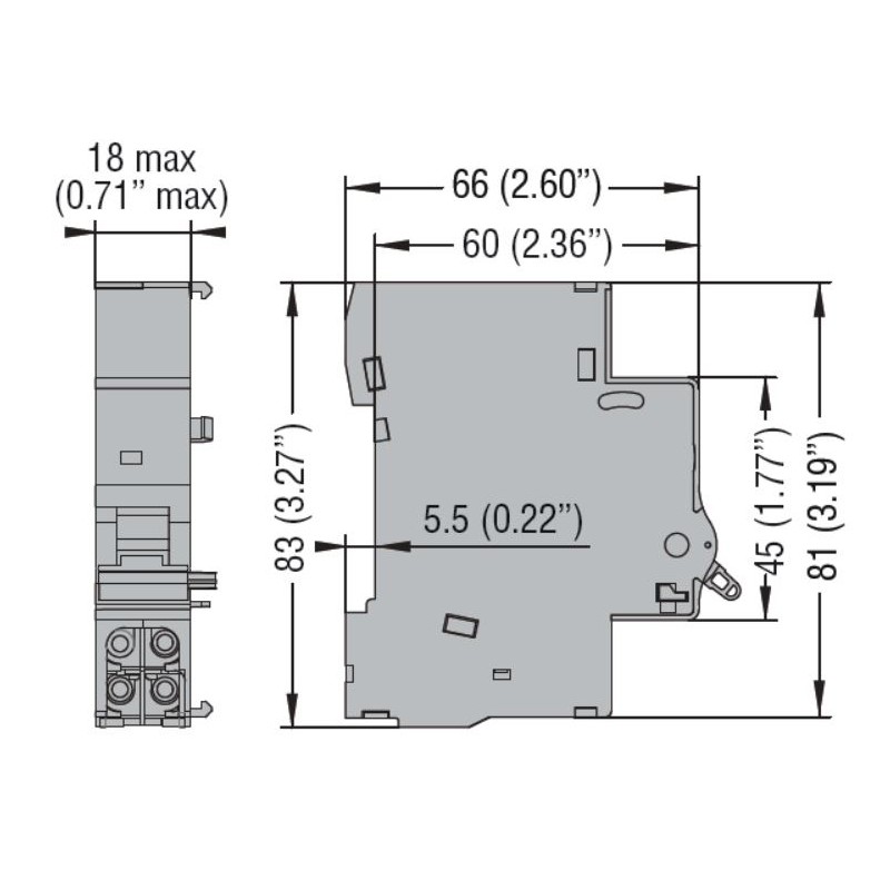 La bobina ocupa 1 módulo DIN y se monta lateralmente en el interruptor, garantizando perfecta integración mecánica y eléctrica.
