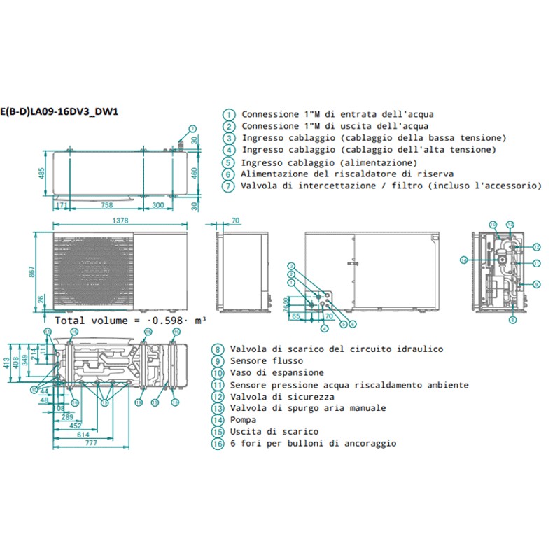 - Dimensiones de la unidad Altura x Anchura x Profundidad: 870 x 1.380 x 460mm
