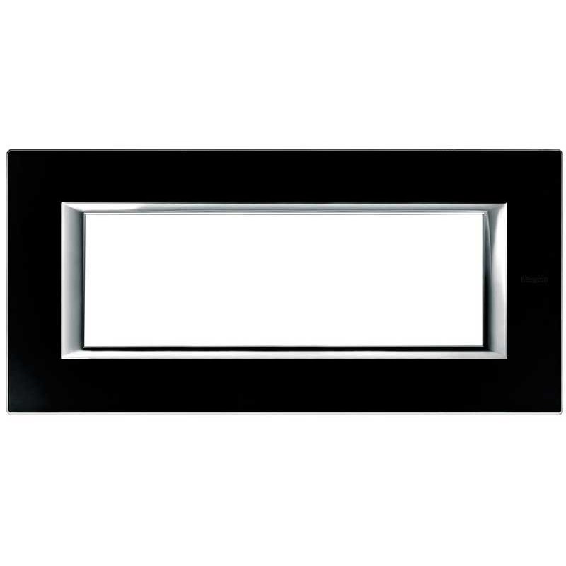 Placa rectangular 6 plazas Bticino Axolute para soporte H4706. Color: VIDRIO NEGRO NOCTURNO. No es posible instalar la placa en otras series Bticino, sino sólo en la serie Axolute.