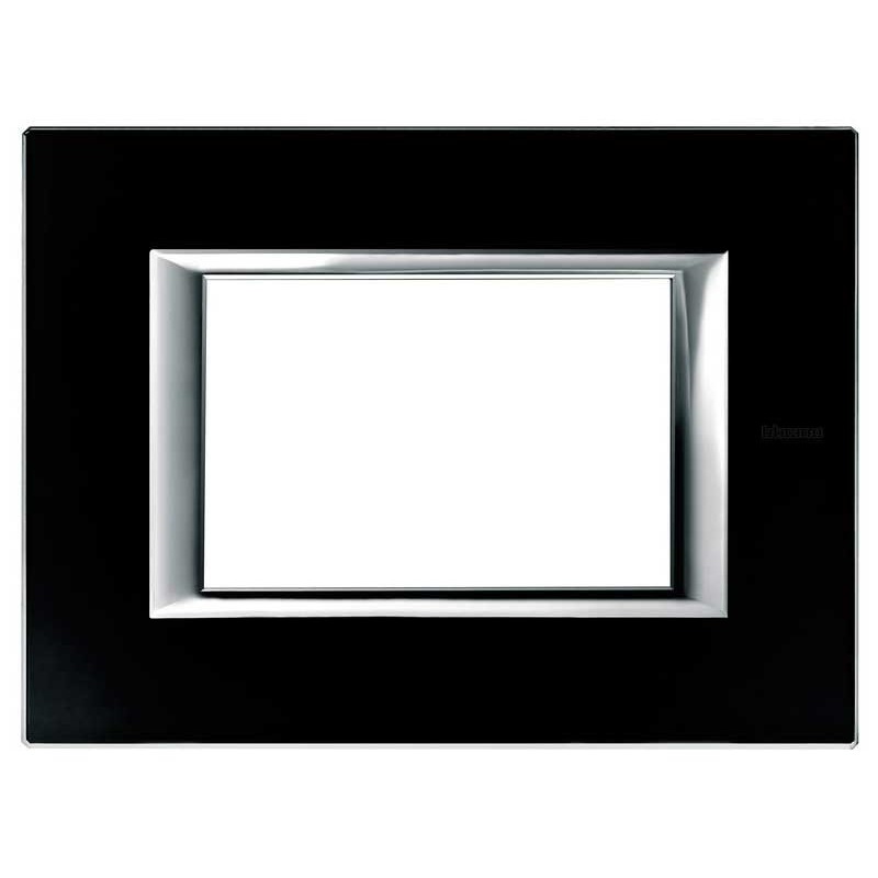Placa cuadrada 3 plazas Bticino Axolute para soporte H4703. Vidrio color Negro Noche. No es posible instalar la placa en otras series Bticino, sino sólo en la serie Axolute.