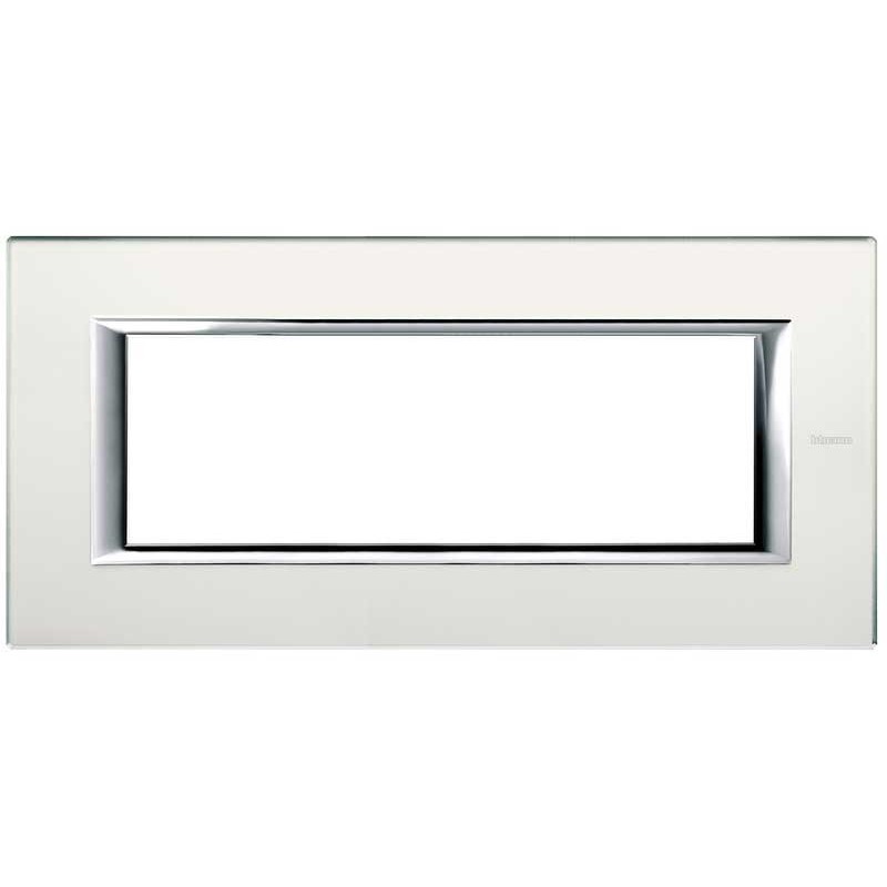 Placa rectangular 6 plazas Bticino Axolute para soporte H4706. Color: ESPEJO ÁCIDO. No es posible instalar la placa en otras series Bticino, sino sólo en la serie Axolute.