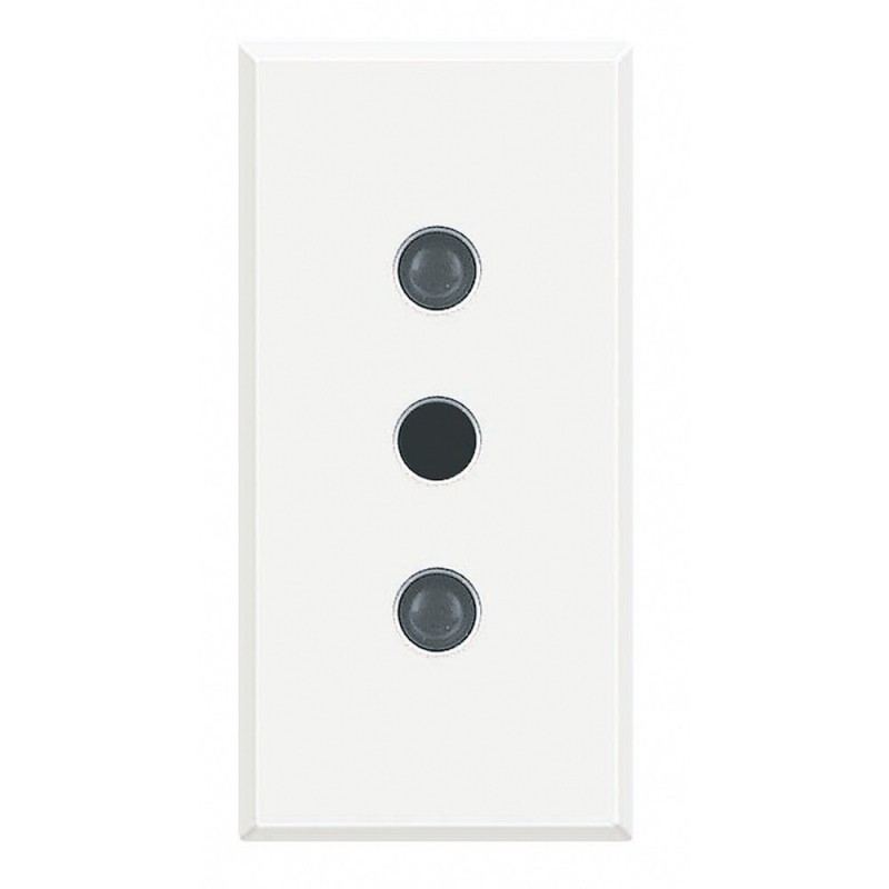 Toma de corriente Bticino Axolute blanco. La toma de corriente sólo permite introducir en su interior enchufes de 10A (enchufes pequeños).