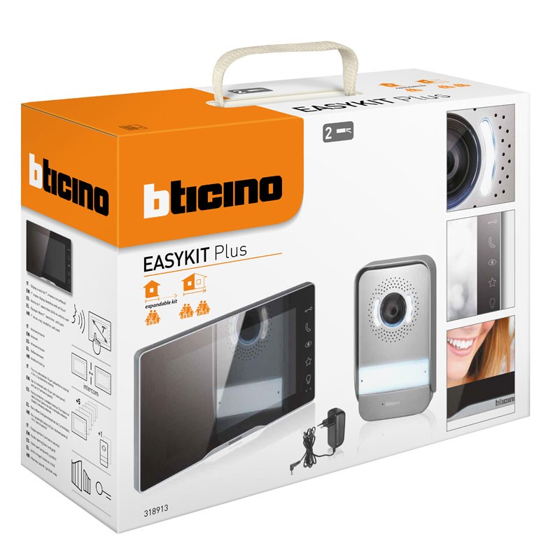 Kit de videoportero unifamiliar Bticino Easykit Plus Sistema 2 hilos, alimentación Plug-In, listo para usar, compuesto por