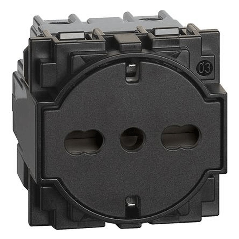 Esta toma es compatible con Schuko y admite enchufes alemanas e italianas, lo que proporciona una versatilidad sin igual. Los contactos de tierra laterales son ideales para su uso con enchufes de tipo europeo, mientras que la protección contra contactos accidentales ofrece mayor seguridad que las tomas tradicionales.