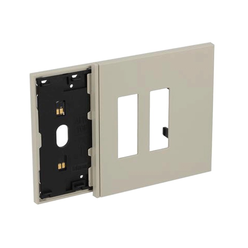 Marco electrificado con placa de enchufe doble Bticino Living Now color arena, para la instalación de 1 mando digital y 2 enchufes: