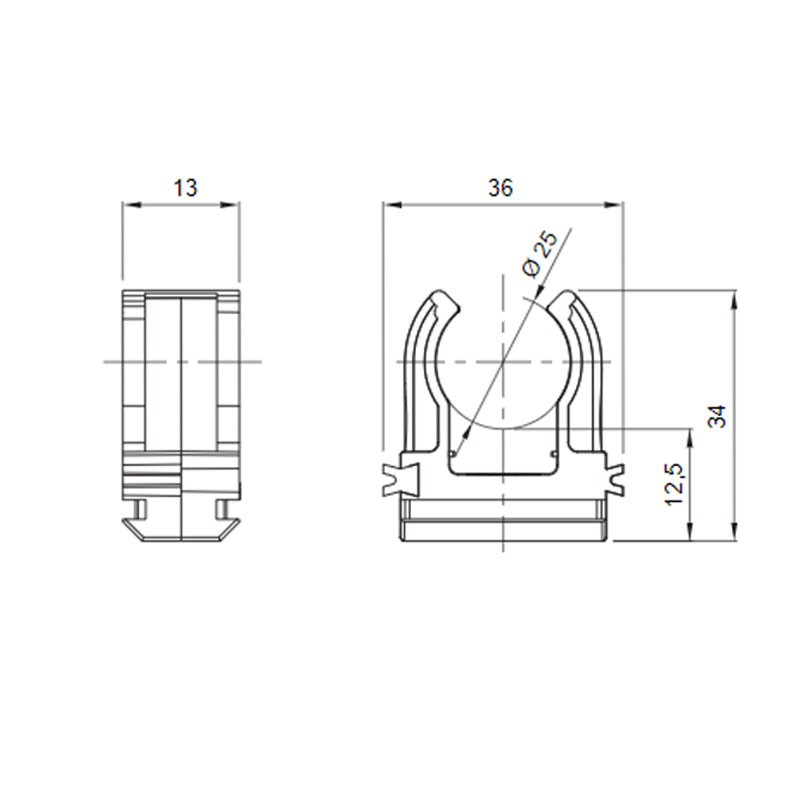 Gewiss clips a presión para tubos de 25 mm paquete de 100 piezas GW50603