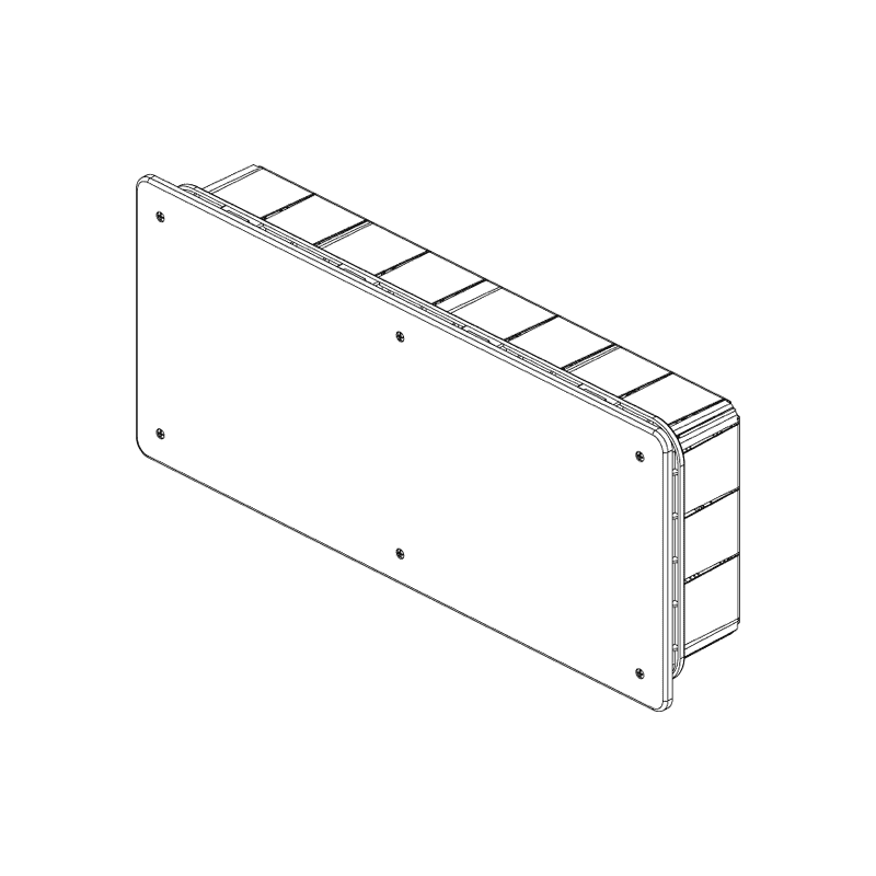 Caja de conexiones de empotrar con tapa blanca y tornillos de fijación. Tamaño 391x154x70 mm