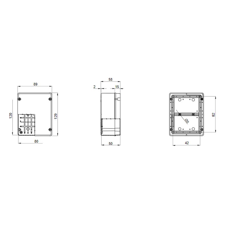 - Dimensiones internas BxHxD: 120x80x50 mm