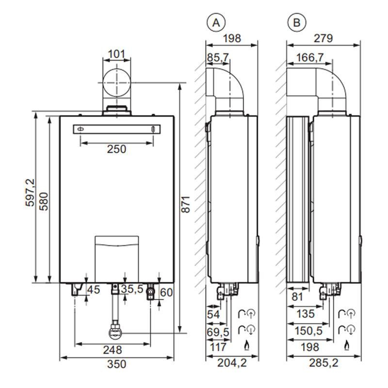 - Diámetro posible de salida de gases de combustión 60/100 - 80/125 - 80/80