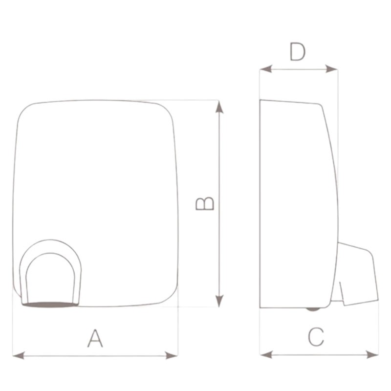 La cubierta frontal de aluminio fundido a presión cepillado garantiza robustez y resistencia al vandalismo, también gracias al cierre atornillado antivandálico. La brida de pared de plástico (PP relleno de talco) garantiza una instalación estable y segura. Este modelo es ideal para entornos públicos como aseos de aeropuertos, estaciones y centros comerciales.