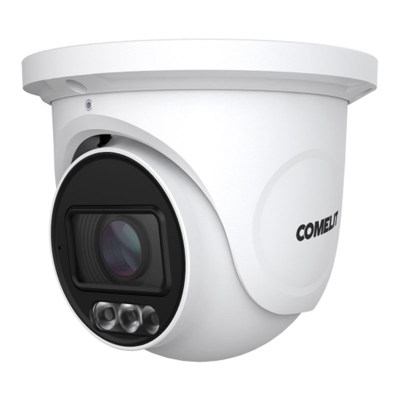 Comelit ColorUP IT08N2ZA es una turret IP 8MP con óptica motorizada 2,8-12 mm: zoom ajustable, Dual Light para colores nocturnos, análisis con distinción personas/vehículos, WDR 120 dB, PoE y protección IP67.