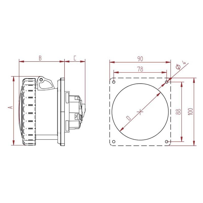 Toma industrial empotrada Fanton con las siguientes características:
