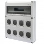 Centralita Gewiss, 20 módulos con 8 bridas para tomas de corriente industriales.