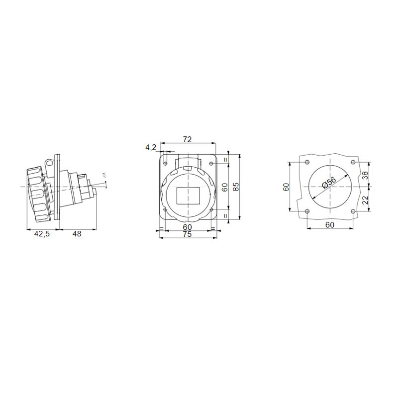 - Dimensiones de la brida (mm) 85x75