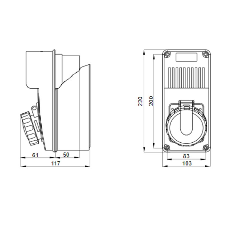 Toma de corriente vertical con enclavamiento Gewiss 2P 16A IP67 24V GW66259N