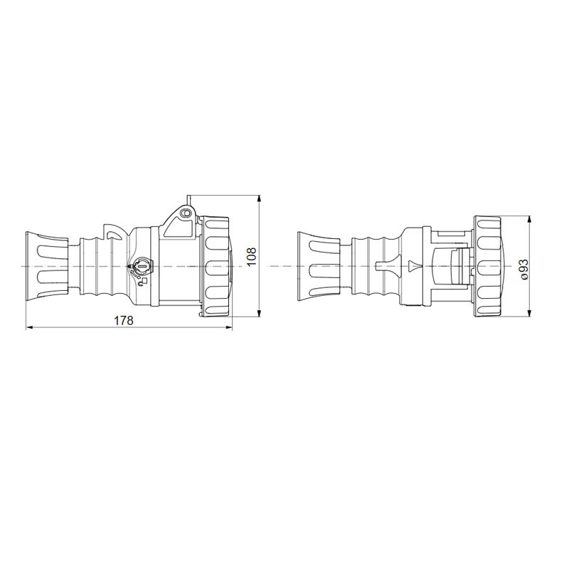 Enchufe móvil recto HP de Gewiss, con las siguientes características: