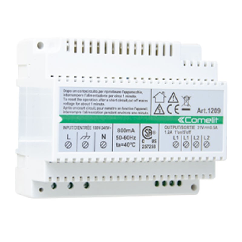 Fuente de alimentación código 1209: para kit de vídeo Simplebus de 2 hilos al que se puede conectar directamente la unidad de puerta y la estación de apartamento.