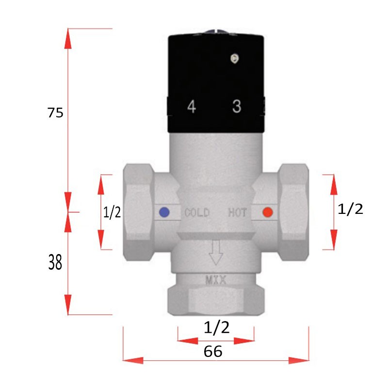 Mezclador termostático Far para sistemas sanitarios está diseñado para garantizar una temperatura constante del agua mezclada en los sistemas sanitarios, protegiendo a los usuarios de los cambios bruscos de temperatura y reduciendo el riesgo de escaldaduras. Gracias a la función antiquemaduras, el dispositivo bloquea automáticamente el suministro de agua caliente en ausencia de agua fría, garantizando un funcionamiento seguro y eficaz, con las siguientes características: