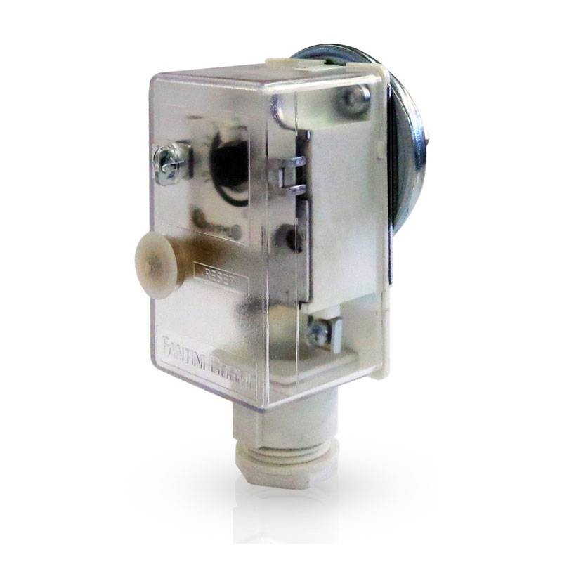 El presostato B01FML está diseñado para proporcionar seguridad y control en sistemas de calefacción. Equipado con un microinterruptor de desconexión rápida con rearme manual y fabricado con materiales de alta calidad, ofrece un rendimiento fiable y duradero en entornos de funcionamiento exigentes: