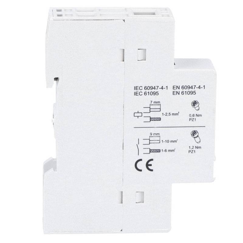 Diseñado para una corriente nominal de 32 A en condiciones AC1, el dispositivo garantiza un control seguro y estable de las cargas eléctricas. Los contactos 2NO garantizan una gestión fiable de los circuitos de alumbrado, motores o resistencias.
