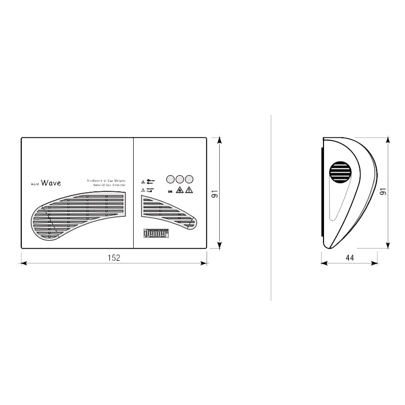 - 1 detector de gas metano RGM Wave en color blanco, con relé para controlar una electroválvula u otro dispositivo que se active en caso de alarma. La alarma se señaliza acústica y visualmente. Alimentación 230V AC - 50/60Hz, 1 relé, Gas detectado metano, Umbral de alarma 8% del límite inferior de explosividad, Dimensiones 152x91x44 mm.