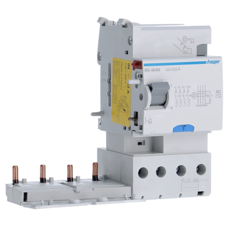 Bloqueo diferencial Hager 4P 63A 500mA AC 3 módulos BG464N