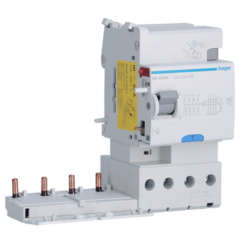 Bloqueo diferencial Hager 4P 63A 500mA AC/S 3 módulos BR464N