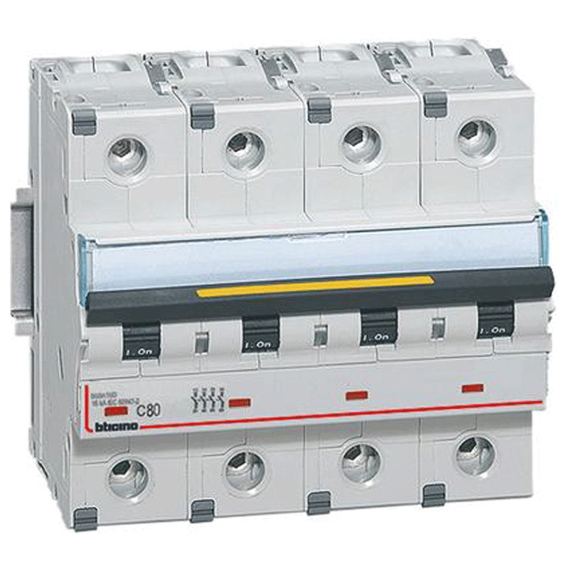 Interruptor de circuito: 6 módulos DIN para montaje - (fijación universal para cualquier pbx en el mercado) (Marca: Bticino), Pin (4P) (Amperios: 80) (capacidad de ruptura: 16kA)(Curva: C)