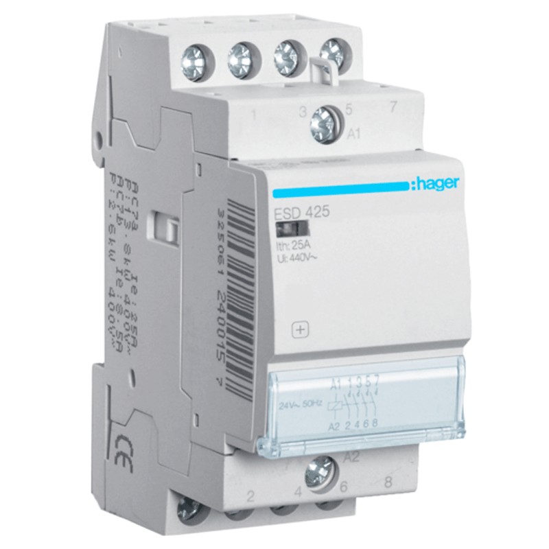 Contactor Hager 25A 4NA 24VAC ECO 2 módulo ESD425