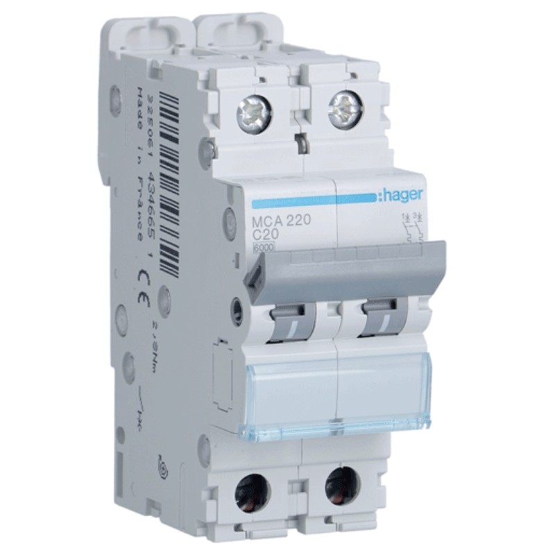 Interruptor de circuito de Hager 2P 20A 6 KA C 2 módulos MCA220