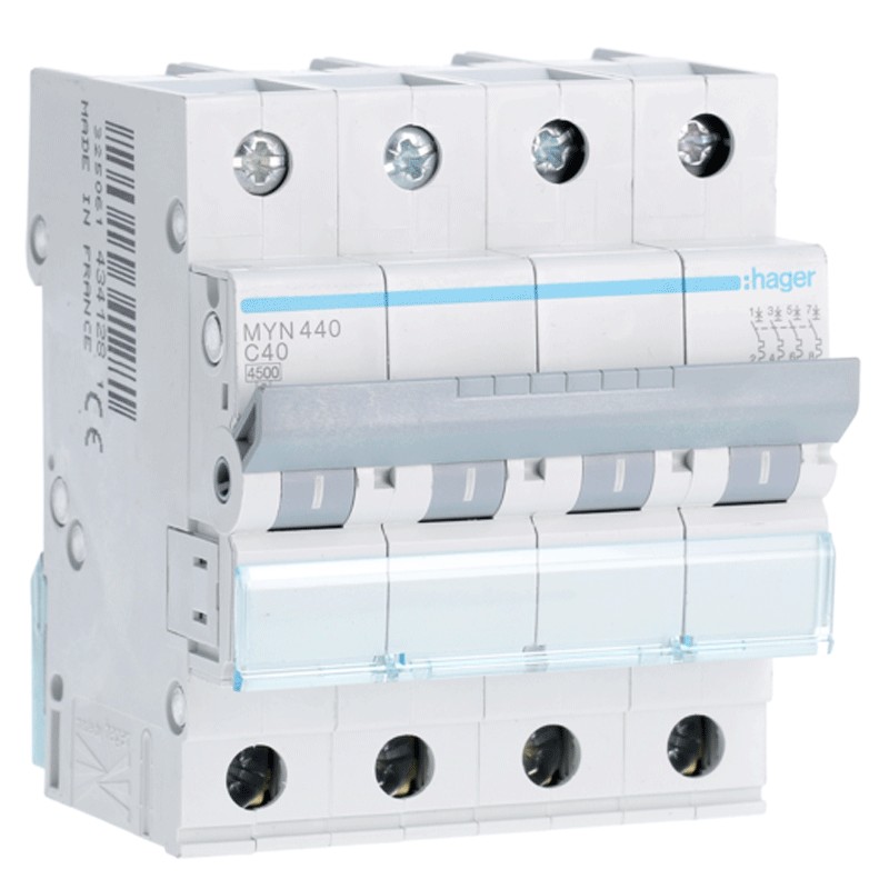 Interruptor de circuito de Hager 4P 40A 4.5 KA C 4 módulos MYN440