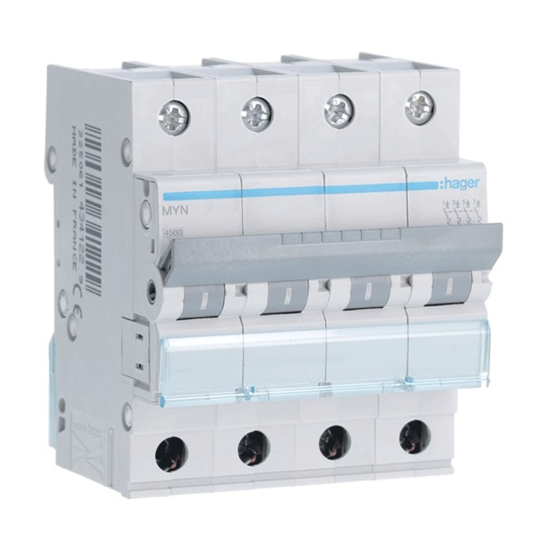 Interruptor de circuito de Hager 4P 6A 4,5 KA C 4 módulos MYN406