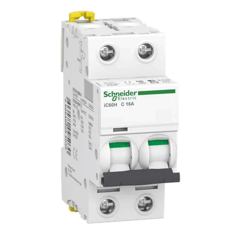 Interruptor de circuito-Schneider 2P 16A 10KA C 2 módulos A9F89216