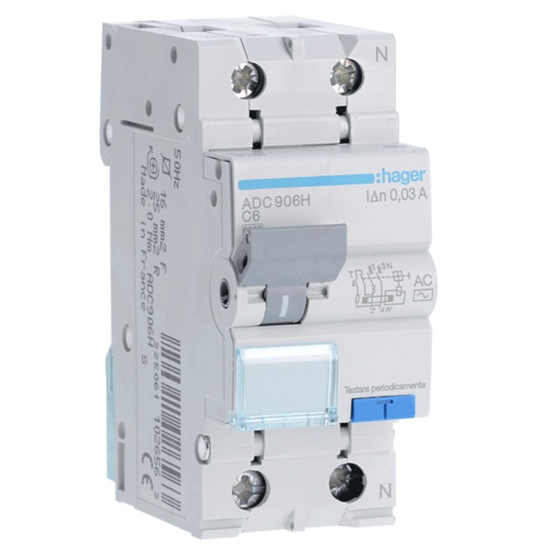 Magnetotérmico Diferencial Hager 1P+N 6A 6kA 30mA curva tipo C AC 2M ADC906H