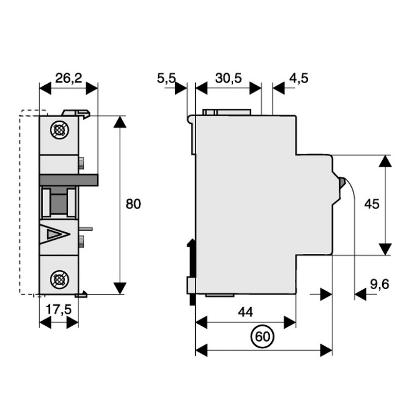 - Ancho de montaje Paso de 1 unidad (17,5 mm)