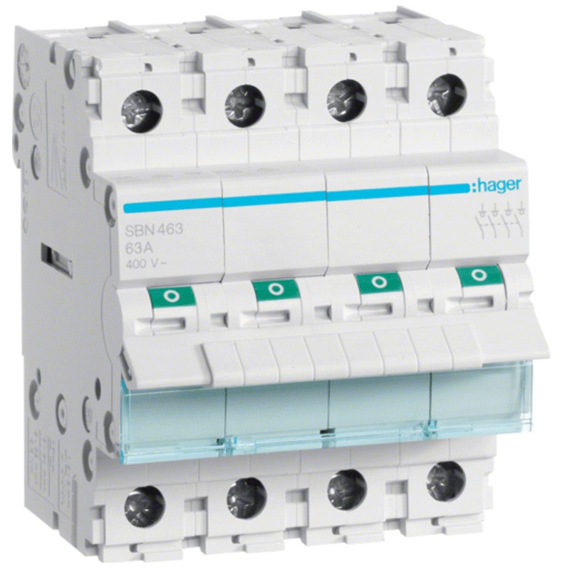 Seccionador Hager de 4 polos 63A de 4 módulos SBN463