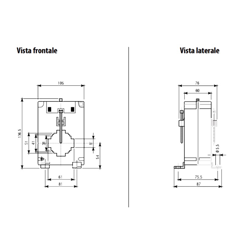 Transformador de corriente TUC60, Vemer de barra pasante, con las siguientes características: