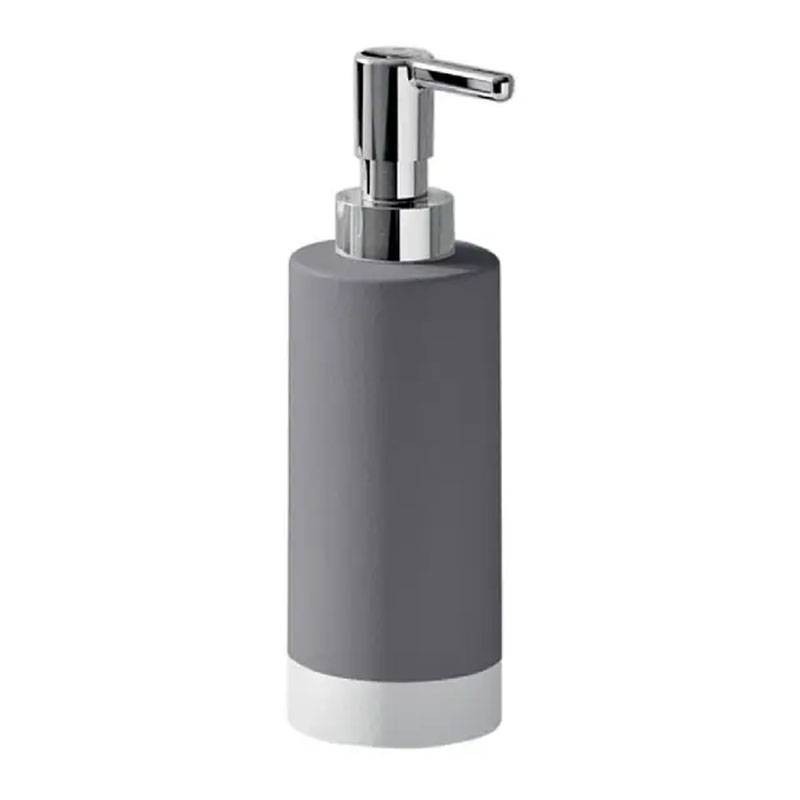 Dispensador de jabón líquido Gedy New Mizar color gris, fabricado en cerámica con dispensador de plástico cromado, dimensiones diámetro 6,4x19,2cm.