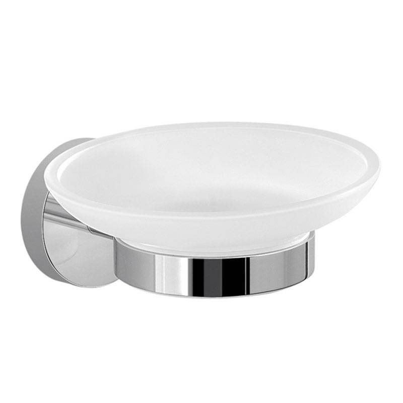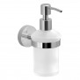 Jabonera de pared Gedy Eros de acero inoxidable y Cromall con recipiente de cristal esmerilado, color cromo, dimensiones 10,8x12,5x5,6cm. Fijación con tornillos o cola (no incluidos).