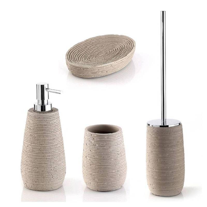 Jabonera Gedy Gemini, color gris tortola, fabricada en resina con efecto piedra, dimensiones 14x9,6x2,8cm.