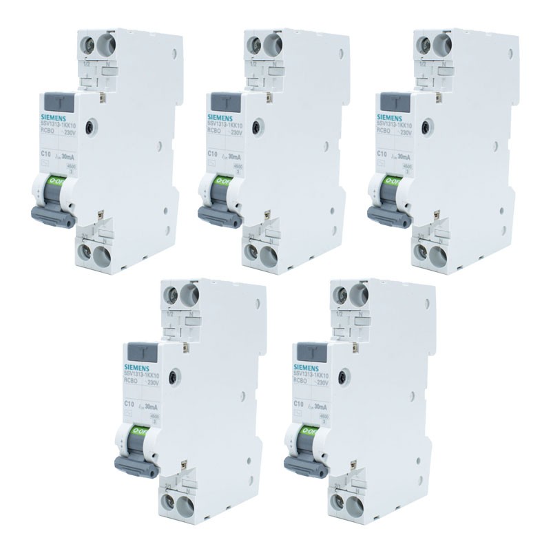 Kit de interruptor automático de corriente residual Siemens 10A 1P+N 30MA AC 4,5KA 5SV13131KK10