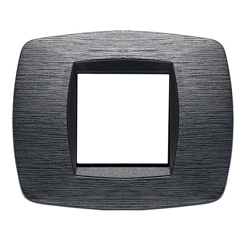 Placa Master Modo 2 módulos (frutas, lugares) color gris satinado. La placa se monta sólo en el soporte 38020-I. Hecho de tecnopolímero.