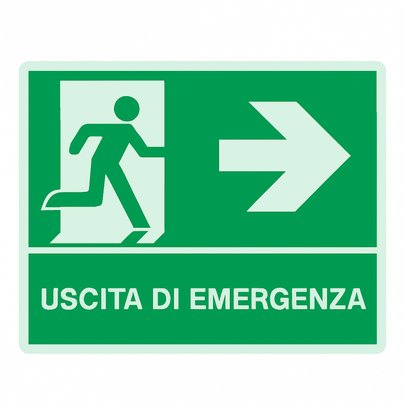 Las dimensiones 250 × 250 mm ofrecen un compromiso óptimo entre espacio y visibilidad: el cartel se integra fácilmente en muchas áreas sin resultar invasivo, pero sigue siendo bien perceptible a lo largo de los recorridos de evacuación. El formato cuadrado es versátil y se adapta a diversas soluciones de posicionamiento, resultando coherente en instalaciones de señalización complejas con múltiples indicaciones (salidas, direcciones, puntos de reunión, dispositivos de seguridad).