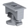 Gracias a su mecanismo giratorio de 45 grados, la abrazadera puede fijarse en cualquier punto de la ranura superior del perfil. La integración de un muelle de elevación mantiene la abrazadera levantada durante el apriete, lo que simplifica enormemente la instalación del panel.